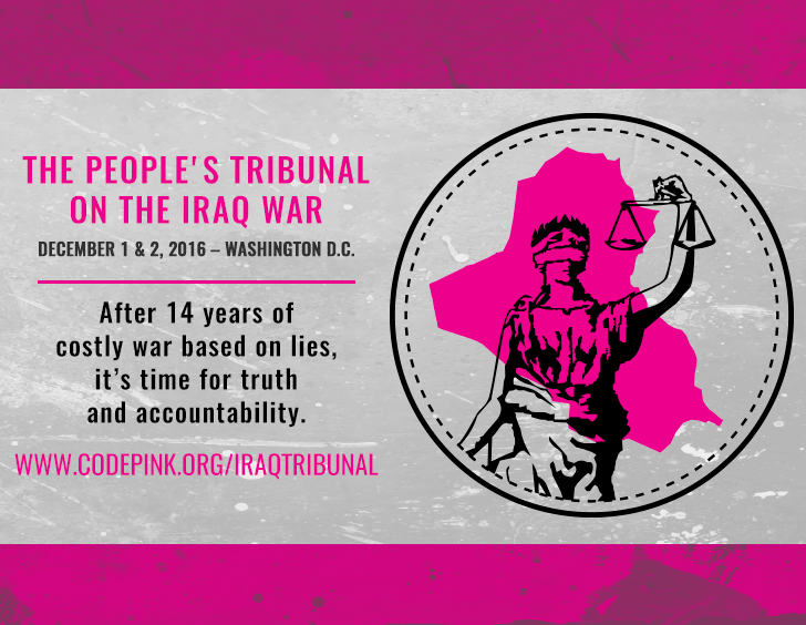 The People's Tribunal on the Iraq War was the first grassroots tribunal to be streamed live online on December 1 & 2, 2016 from Washington D.C. It was also the first tribunal in which people could testify remotely from anywhere in the world, through pre-recorded video or live through Skype. After 14 years of costly war based on lies, the project formed to uplift truth, accountability, and to offer a space for healing for the peace movement. The People's Tribunal on the Iraq War is an effort to unify the global anti-war/peace movements with other justice movements by uplifting testimonies of the costs of this war—and war itself. The Tribunal brings the lies that created the war on Iraq into public awareness, and at the time, demanded Obama act on them. It is a tool that was created to inspire the anti-war movement before the inauguration of the administration in 2017. It is an educational tool that all groups can use to build, inspire, and empower their organizations and communities to advocate for peace, an end to war, & demilitarization.